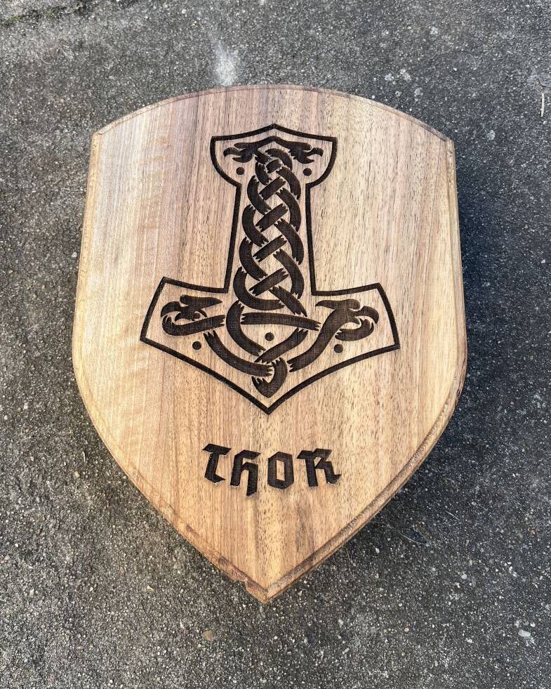 238,00 € inkl. MwSt.Germania Holz #7 | Wappenbrett mit Gravur „Thor`s Hammer“ | Unikat | Walnuß | Vollholz
